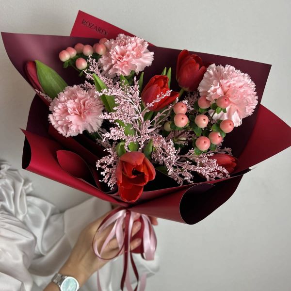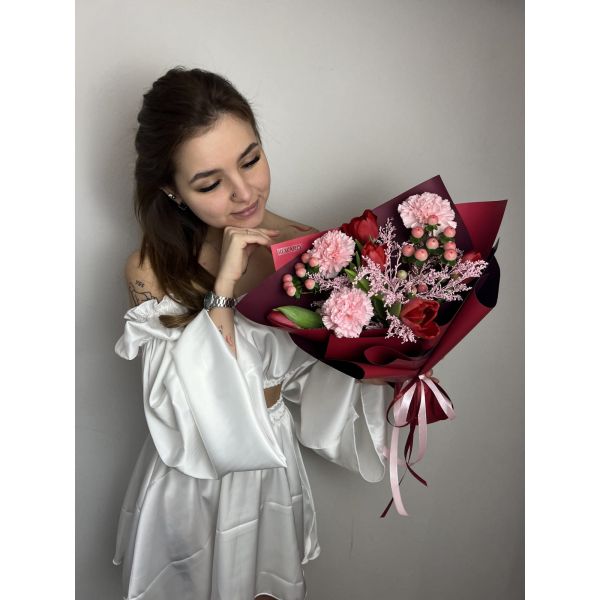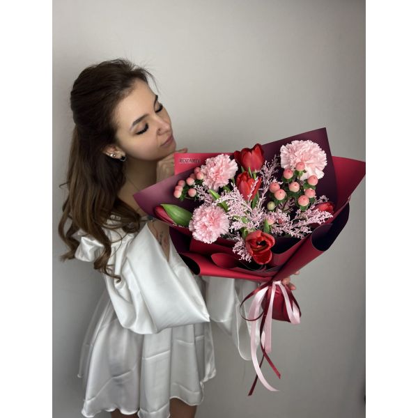 Букет из гвоздик и тюльпанов "Кальвадос"