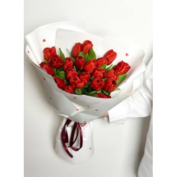 Букет из 19 красных тюльпанов "Сказка"